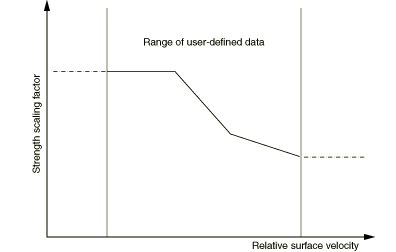 CZone crush stressThe crush stress can be thought of as the stress of the crushing body at the crushing interface. The crush stress is specified as a material property but actually does not directly influence the constitutive calculations associated with element integration points; rather, the crush stress limits the contact pressure magnitude at an actively crushing interface. The crush stress in the composite material can be a constant or can vary as a function of angle within the material. Input File Usage Use the following option to define a constant crush stress: CRUSH STRESS crush stress Use the following option to define the dependence of crush stress on the incidence angle: CRUSH STRESS crush stress, material angle in degrees For example: CRUSH STRESS 90.0, 0.0 60.0, 45 90.0, 90 60.0, 135 90.0, 180 Crush stress as a function of a field variableThe crush stress in the composite material can vary as a function of a predefined field variable. This field variable can represent any physical or geometrical quantity that might affect the crush stress, such as curvature of the laminate. Input File Usage Use the following option to define the crush stress as a function of a field variable: CRUSH STRESS, DEPENDENCIES For example, the following definition can be used to define a crush stress that increases by 10% in curved regions of the model versus flat regions. The example assumes that curvature information is defined by the second field variable (FV2), which has been initialized with a value of one at the nodes in the curved regions of the model and a value of zero in the flat regions. Field variable dependency is evaluated only at the beginning of the analysis. Subsequent changes in the field variable will have no effect on the crush stress of the material. CRUSH STRESS, DEPENDENCIES=5 90.0, 0.0, , , 0.0 60.0, 45.0, , , 0.0 90.0, 90.0, , , 0.0 60.0, 135.0, , , 0.0 90.0, 180.0, , , 0.0 99.0, 0.0, , , 1.0 66.0, 45.0, , , 1.0 99.0, 90.0, , , 1.0 66.0, 135.0, , , 1.0 99.0, 180.0, , , 1.0 Crush stress as a function of velocityThe crush stress in the composite material can depend on the deformation rate at the crush front. The crush stress velocity factor is used to scale the crush stress based upon velocity. The scaling factor is calculated from a user-supplied table of scaling factor versus relative surface velocity. The final crush stress is the velocity dependence factor multiplied by the original crush stress. No extrapolation of the supplied data is performed for velocities that lie outside the maximum or minimum value supplied, as shown in Figure 6. Figure 6. Crush stress is held constant outside of the supplied data