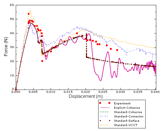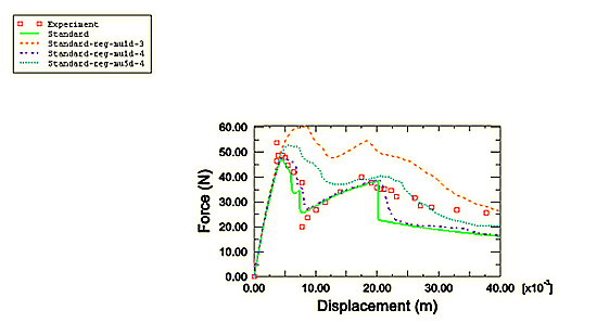 ![]() Figure 2. Reaction force vs. prescribed displacement: experimental and numerical