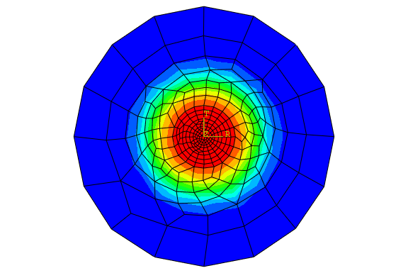![]() Figure 4. Contour plot of pore pressure at an intermediate time.