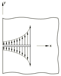 ProductsAbaqus/Standard Problem descriptionFor the two-dimensional case an edge crack of length 1 m is modeled in a linear elastic specimen. The results are effectively for an infinitely long plate. The geometry is symmetric about the crack line, so only the top half is modeled. The geometry is meshed using CPE8R elements. The crack faces are loaded in five steps. In the first step a load of constant magnitude 1 MPa is applied. In all subsequent steps the load is zero at the surface of the specimen and has magnitude 1 MPa at the crack tip. The load varies linearly in Step 2, quadratically in Step 3, cubically in Step 4, and quartically in Step 5. For the three-dimensional case the model from 3DDoubleEdgedNotchC3D20_model.py in Contour integral evaluation: two-dimensional case, is modified to apply a uniform crack-face loading via user subroutine DLOAD. Results and discussionResults for the two-dimensional and three-dimensional analyses are discussed in the following sections. Two-dimensional resultsAbaqus results are compared with the results taken from page 8.8 of The Stress Analysis of Cracks Handbook by H. Tada, P. C. Paris, and G. R. Irwin. The crack-face loading is given by MPa. Results for the J-integral in Pa are presented in Table 1. Three-dimensional resultsThe results should be the same as those shown in Contour integral evaluation: two-dimensional case. The results are within a difference of 0.1%. Python scripts
