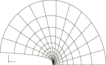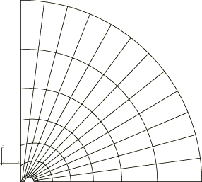 ![]() Figure 2. Mesh for portion of model outside the 11 rings of radially focused