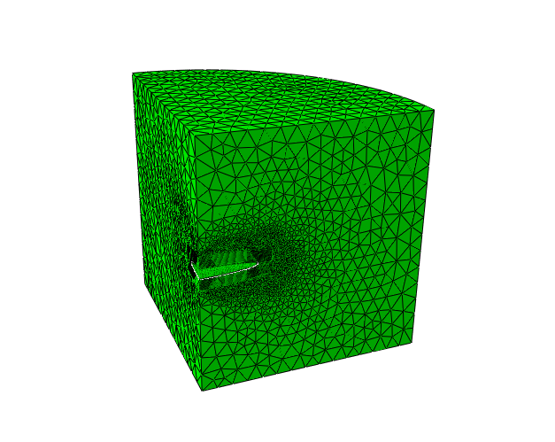 ![]() Figure 7. Mesh for semi-elliptic surface crack in a rectangular plate with