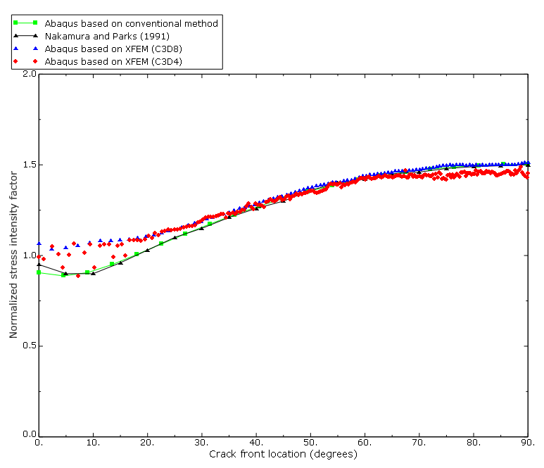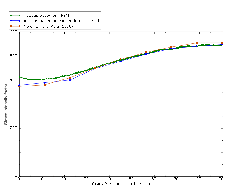 ![]() Figure 10. Stress intensity factors computed for a semi-elliptic crack in a