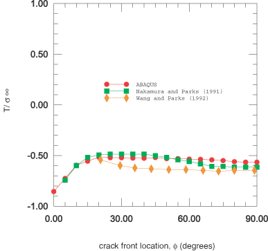 ![]() Figure 11. T-stresses computed for a semi-elliptic crack in