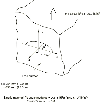 ![]() Figure 6. Semi-elliptic surface crack in a rectangular plate.