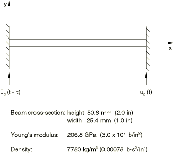 ProductsAbaqus/Standard Enforced motion is often the primary source of excitation in vibration problems. Examples include vehicle suspensions responding to road irregularities and civil structures subjected to seismic ground motions. In these problems the forcing functions are given by the time history of motions at the supports of the structure. For modal-based analyses using the modal dynamic and the steady-state dynamic procedures, the support motions are simulated by prescribed excitations, called base motions. Base motions are applied by constraining groups of degrees of freedom into one or more “bases” by specifying a base name on the boundary condition in the frequency step. Multiple bases are required if base motions cannot be described by a single set of rigid body motions. Degrees of freedom that are constrained without being assigned to a named base make up the primary base. This is the only base if the motion can be described by a single set of rigid body motions. Constrained degrees of freedom that are associated with named boundary conditions make up the secondary base or bases. Abaqus uses the modal participation method for primary base motions and the “large mass” method for secondary base motions (see Base motions in modal-based procedures). Problem descriptionAs an illustration we consider a simple model of a bridge whose supports are subjected to seismic excitations. Two cases are analyzed: the first considers identical base excitations at the supports, and the second assumes that the left-end support is subjected to the excitation with a time shift. The forcing function corresponds to the same El Centro N–S earthquake records used in Analysis of a cantilever subject to earthquake motion. The model is a double cantilever lying horizontally along the x-direction (see Figure 1), analyzed with 20 equal-sized B23 elements. A two-second event is studied. Analyses are also performed using the implicit dynamic procedure to provide a basis for comparison of the results obtained by the modal dynamic procedure. The time incrementation scheme is the same as that used in Analysis of a cantilever subject to earthquake motion. Three models with different “base” organizations are used for the modal dynamic analyses. In the first model the base motion is invoked without referring to a secondary base. In the second model the base motion is invoked without referring to a secondary base for the right-end support—the primary base—and with the base name for the left-end support, which is declared in the frequency step as a secondary base, named NODE21. Finally, a model with two secondary bases and no primary base is used. In this model both supports are declared in the frequency step as secondary bases, named NODE1 and NODE21. Results and discussionThe base acceleration record is shown in Figure 2. Figure 3 shows the (total) displacement response of the midspan node to the unshifted and shifted base excitations predicted using the dynamic procedure. The modal dynamic analysis results agree closely with the implicit dynamic solution. Figure 4 shows the total displacement response of the midspan obtained with beam models using different dynamic procedures, as well as various base motions for modal dynamic analyses, for the case with no time shift. Figure 5 shows the same responses for the case where the motion at the left-end support is delayed by 0.25 second. As a verification exercise the modal dynamic analysis that invokes multiple base motions is repeated using a shell mesh with 10 S8R elements and gives the same results as obtained by the beam model. These solutions are obtained based on superposition of the first six nonzero eigenmodes of the structure. For models with secondary bases the additional low-frequency modes resulting from the unconstrained degrees of freedom at the bases must be taken into account. Abaqus automatically increases the number of eigenfrequencies to keep the number of relevant frequencies constant. However, the eigenmode range used for the modal damping must be extended by the user. The boundary conditions that make up the primary base normally suppress all rigid body motion. If they do not, as occurs in the third model where the primary base is absent, a suitable (negative) shift point must be used in the frequency procedure to avoid numerical problems. In modal dynamics the default output gives motion relative to the primary base. The sum of this relative motion and the base motion of the primary base yields the total motion. In the absence of primary base motions the relative and total motions are identical. The plots shown in Figure 4 and Figure 5 have been requested appropriately to give total values in all cases. Input filesModal dynamic analysis