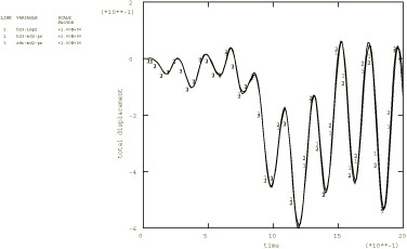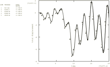 ![]() Figure 4. Total transverse displacement responses of beam midspan to base motions without time shift.