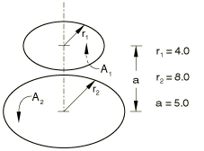 ProductsAbaqus/Standard Relatively simple configurations were selected for these verification problems to ensure that analytical solutions or tabulated results could be found. In some cases certain parameters such as the distance between two surfaces or the number of elements on a surface were varied to illustrate the effects of these parameters on view factor calculations within Abaqus. To duplicate the tabulated results for the cases where parameters were varied, the user can modify the input files provided with the Abaqus release. Parallel circular disks with centers along the same normalProblem description![]() Analytical solutionwhere , , and . Results and discussionThe number of elements along the bottom area can be varied to obtain the following results: