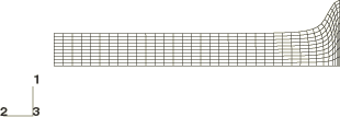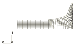 ![]() Figure 2. Deformed shape at 20 microseconds (CAX4R model using the combined hourglass control).