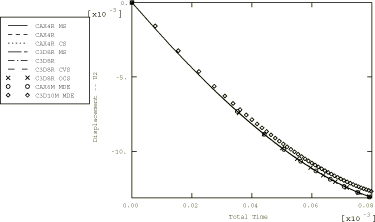![]() Figure 20. Time history of the free end displacement (see the table listing