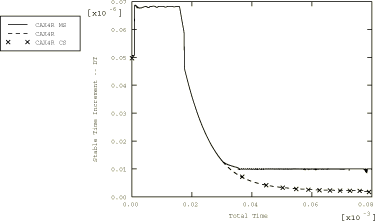![]() Figure 18. Time history of the stable time step size (see the table listing