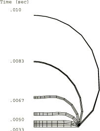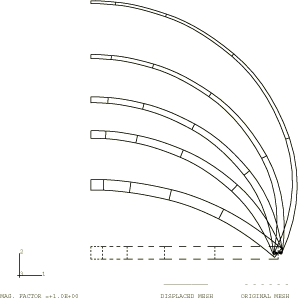 ![]() Figure 3. Displaced shapes for the axisymmetric continuum mesh, thick disc