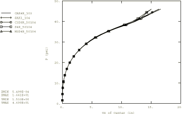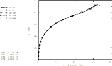 ![]() Figure 8. Pressure versus deflection results for load ramp duration of 0.01 sec,
