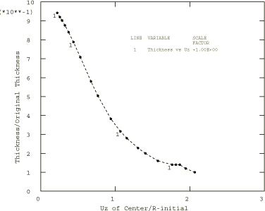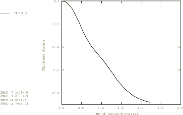 ![]() Figure 5. Thickness strain versus central displacement for the axisymmetric