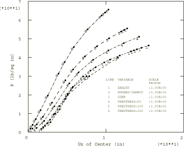 ![]() Figure 7. Pressure versus deflection results for load ramp duration of 0.01 sec,