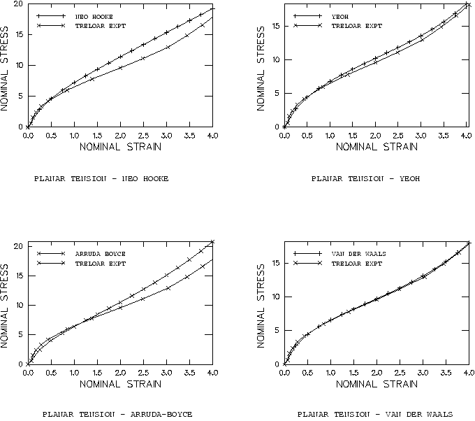 ![]() Figure 14. Planar tension (pure shear) results using uniaxial tension test data