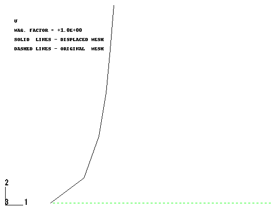 ProductsAbaqus/StandardAbaqus/Aqua Currents flowing past a pipeline result in drag loading, which must be accounted for in designing restraints and moorings for the pipeline. Drag loadings vary approximately as the square of the relative normal velocity (difference between pipe and fluid velocities), and effects can be dramatic, as illustrated in the present example. Numerically drag loading results in an unsymmetric load stiffness contribution, so the resulting finite element equations are also unsymmetric. The equation of Morison et al. (1950) is used in Abaqus to account for drag loading. The total drag force is divided into tangential, transverse, inertia, and lift contributions. The first two of these relate the drag force to the square of relative velocity, through the experimentally determined tangential and transverse drag coefficients, respectively. The inertia drag force is an “added mass” contribution based on the relative acceleration. The lift term is relevant when the pipeline lies on the seafloor or near a platform, so that the current velocity varies across the pipe. For details of Morison's drag formulation, see Drag, inertia, and buoyancy loading. Problem descriptionA pipe 304.8 m (1000 ft) long, initially straight and stress-free, is loaded by a uniform cross-current of 0.762 m/s (2.5 ft/sec) as shown in Figure 1. The outside radius of the pipe is 76.2 mm (0.25 ft), and its wall thickness is 15.24 mm (0.05 ft), so the pipe is “slender” and virtually inextensible (its extensional stiffness is much greater than its flexural stiffness). Abaqus provides a family of two-dimensional and three-dimensional hybrid beam elements designed specifically for use in such cases. In this case five B23H elements are used to model the pipeline. The pipe is made of a linear elastic material, with a Young's modulus of 206.8 GPa (4.32 × 109 lb/ft2). A general beam section is used for the pipe section specification. This choice avoids numerical integration of the pipe section during the analysis and, hence, reduces computer costs. Numerical integration over the beam section would be necessary if plasticity or other material nonlinearities were to be considered. The loading on the pipe results from a uniform current flowing in the global y-direction, as shown in Figure 1. The current velocity is 0.762 m/s (2.5 ft/s), and the density of the water is 1000 kg/m3 (1.94 slug/ft3). The transverse drag coefficient is 1.2, and the tangential drag coefficient is 0.002. The large difference between these coefficients reflects the different effects transverse and tangential flow have on the pipeline, the tangential drag being primarily a skin friction effect only. The pipeline is assumed to be built-in at one end, as shown in Figure 1. Results and discussionThe final pipeline configuration resulting from the current induced drag loads is shown in Figure 2. The dramatic effect of the drag loads is evident. It is typical of such monotonically loaded, geometrically nonlinear problems to require smaller load increments for convergence at early stages of the analysis, and the load increments can increase as the analysis progresses. This is because the system is most flexible in its original configuration. By reducing load steps when convergence is difficult, the automatic loading option in Abaqus avoids user experimentation to obtain convergent solutions. This greatly eases the task of obtaining solutions and generally reduces the computer costs of generating such solutions. For this reason automatic incrementation is recommended for problems of this type. References