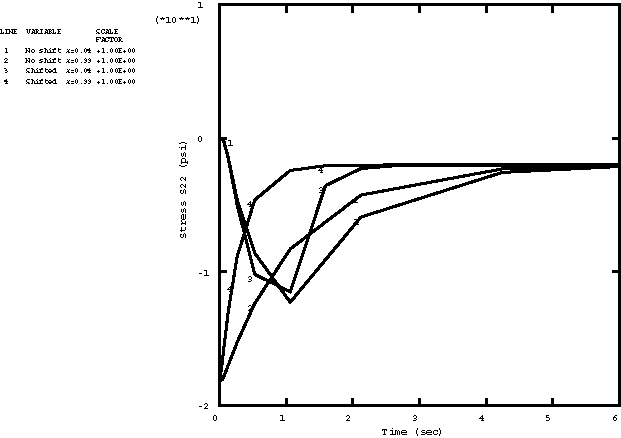 To run the stress analyses without the shift, simply remove the TRS option and the one data line that follows it from viscoslabthermload_smallstrain.inp, viscoslabthermload_largestrain.inp, viscoslabthermload_x_cpe3t.inp, viscoslabthermload_x_cpe4rt.inp, viscoslabthermload_xh_cpe3t.inp, and viscoslabthermload_xh_cpe4rt.inp. References
