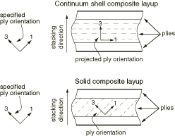 Figure 2. Plies and ply orientations for shell and solid composite layups.
