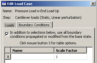![]() By default, each load case contains the encastre boundary condition propagated from the base state, as shown in Figure 3. Figure 3. Load case definition that includes boundary conditions propagated from the base state for the cantilever beam model.