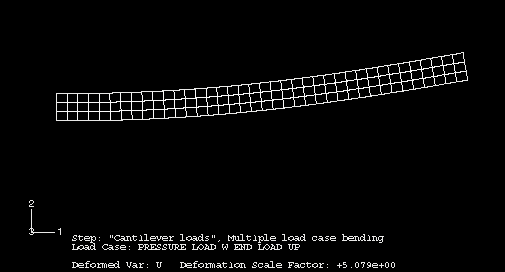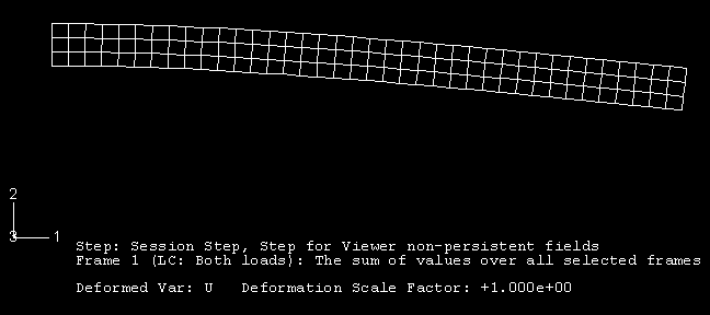 ![]() The new field output is contained in a frame of the session step and is available from the Field Output dialog box. Figure 3 shows a plot of the combined deformation results. Figure 3. Combined deformation results from both load cases.