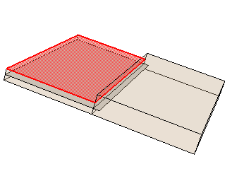 ![]() Abaqus/CAE automatically associates the new offset shell faces with a thickness based on the offset calculations. If you selected target faces to calculate the offset distance, Abaqus/CAE also automatically recalculates the offset for any changes in the geometry of the top and bottom face sets. Use the Assign Thickness and Offset tool and the Render shell thickness option to edit and view the thicknesses assigned to the shell faces. For more information, see Assigning thicknesses and offsets, and Visualizing shell thicknesses. If you use the auto trim option while offsetting faces, Abaqus/CAE offsets the faces and extends the outer edges of the new faces by an amount equal to the offset distance. The new faces are then trimmed where they intersect with the reference representation. Figure 2 shows a possible effect of using the auto trim option. The reference representation contains two cells, and the highlighted face at the top of the thinner cell was picked for the offset operation. Using the auto trim option, the new face extends into the second cell of the reference representation. Figure 2. The trim option trims only to the outer faces of the reference representation.