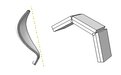 An axisymmetric shell section (smooth curved face) and an extruded shell where faces are joined along a straight edge are shown in Figure 1. As shown in the figure, shell thickness is accurately displayed for smooth curved shells; however, where shell faces are joined along edges, the displayed thickness contains gaps and overlaps at the corners between faces. Figure 1. Displaying shell thickness on a smooth curved face and faces joined along edges.