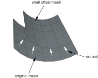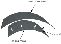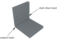 When you create a mesh that is offset from a concave mesh surface, the elements tend to converge, as shown in Figure 1. Figure 1. Elements converge when offset from a concave surface.