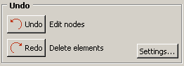 This capability means that a single undo removes your most recent change to the mesh, a second undo removes the next most recent change, and so on. Similarly, a single redo restores the most recently undone mesh change. The graphic below shows that the Undo section of the Edit Mesh dialog box includes short descriptions next to the Undo and Redo buttons, highlighting the mesh change that will be undone or redone if you click the button.