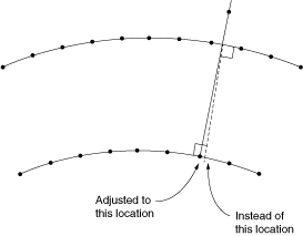 When the assembled fastener is instanced in the main model, Abaqus places the first node of the connector where the first projection point of the point-based fastener model is located. Both fastener types accomplish this placement with normal projections. However, for assembled fasteners an adjust point constraint is performed on the second node of the connector; i.e., a normal projection onto the second surface. This action is not the same as moving normal to the first projection point facet unless the two normals align perfectly. Therefore, the second (subsequent) attachment points can be different for assembled fasteners versus point-based fasteners, which will lead to differences in the analysis solution.