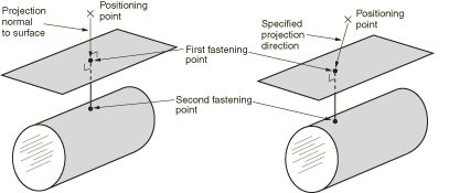 ![]() Abaqus creates the second (and subsequent) fastening points when you submit the job for analysis by projecting the first fastening point onto the other surfaces to be connected along the normal to the closest face. |