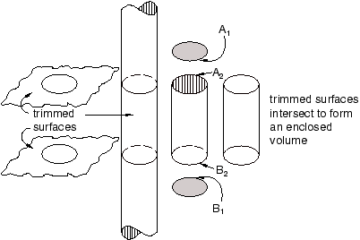 For example, a cylinder can be defined from three trimmed surfaces as shown in Figure 2.