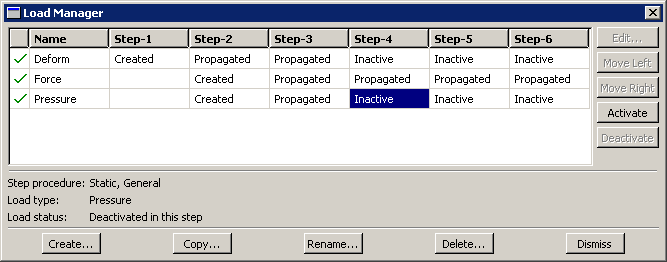 In the history shown above, for example, the Inactive status of Pressure in Step-4 is selected. If you clicked Activate, the history would change as shown below: