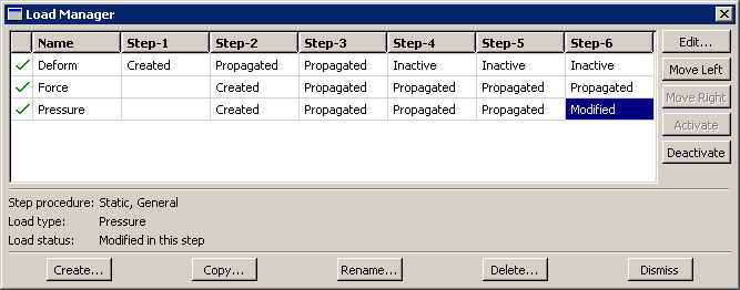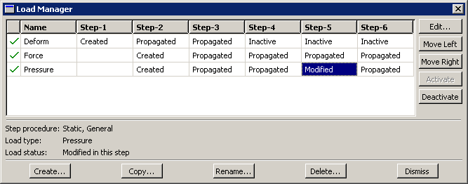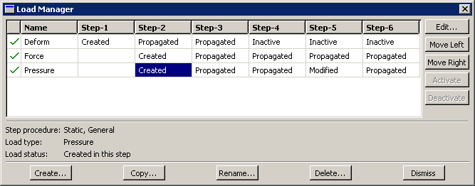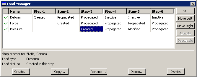 For example, the Created status of Pressure in Step-3 is selected in the history shown above. If you clicked Move Left, the history would change as shown below:
