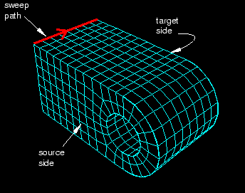 Abaqus/CAE creates swept meshes by internally generating the mesh on an edge or face and then sweeping that mesh along a sweep path. The result can be either a two-dimensional mesh created from an edge or a three-dimensional mesh created from a face. Like structured meshing, swept meshing is a top-down technique limited to models with specific topologies and geometries. Figure 2 shows an example of a swept mesh. For more information, see Swept meshing.