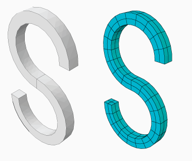These requirements mean that you can create valid cylindrical elements only on revolved parts or parts that you can split into revolved domains. The S-shaped extrusion in Figure 1 can be meshed with cylindrical elements after partitioning into revolved regions. Figure 1. Acceptable geometry for solid cylindrical meshing.
