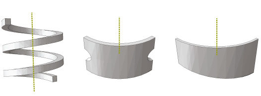 ![]() Figure 2 shows three types of geometry—a helical spring, a revolved part with cuts, and a tapered part—that cannot be meshed with solid cylindrical elements because of these meshing requirements. Figure 2. Forms of geometry that cannot be swept meshed with cylindrical elements.