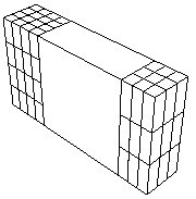 The central region cannot be meshed incrementally because one end has a mesh with 4 × 4 mesh pattern and the opposite end has a mesh with a 3 × 3 mesh pattern. If you try to mesh only the central region, Abaqus/CAE will detect the problem and allow you to choose between the following: