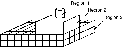 To create a compatible mesh between region 1 and region 2, the mesh of region 2 is derived from the mesh of the cylinder in region 1. Similarly, the mesh of region 3 is derived from the mesh of region 2, which in turn was derived from the mesh of the cylinder in region 1. As a consequence, if you mesh region 3 first, Abaqus/CAE cannot incrementally mesh regions 1 and 2. You must allow Abaqus/CAE to mesh region 1 prior to remeshing regions that were already meshed.