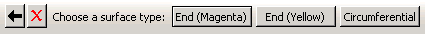 When editing an existing surface definition created on a wire, you can reselect sides by choosing either the Magenta or Yellow arrowheads. Magenta indicates the side that you used to create the surface previously, and Yellow indicates the other side. For example, if you selected the Yellow side to create the surface previously, that side now appears as Magenta during editing