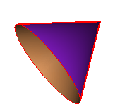 Abaqus/CAE displays the exterior side of the cone in purple and the interior side of the cone in brown. Therefore, to select the exterior of the cone, you would click Purple in the prompt area; to select the interior, you would click Brown.