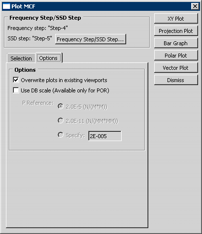 The magnitude or the phase of the sum indicates the summation of modal contribution factors over all the modes. This is same as the Abaqus output variable (POR, U, V, or A). When you click Plot MCF dialog box. Click the button to select different frequency and steady-state dynamic step. , the plug-in displays theClick the Selection tab to select the following: