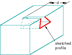 To create an extruded cut, you extrude the profile through a specified distance (d), as shown in Figure 1.