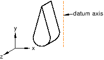 You can use the Datum toolset to create a datum axis. You can then select the datum axis to control the orientation of the part on the Sketcher grid when adding or modifying a feature to a three-dimensional solid. Creating a datum axis is useful when the part does not already contain the necessary axis.