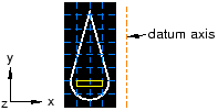Sketching the slot is difficult because selecting either of the two straight edges of the part as the sketch's vertical axis causes the sketch gridlines to align with the line you select, not with the X- or Y-axis. To make it easier to create the slot with the desired orientation, first use the Datum toolset to create a datum axis along the Y-axis, as shown in Figure 7.