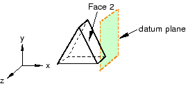 Datum points are projected onto the Sketch plane in the Sketcher, and the projected point can be selected. However, you cannot refer to datum axes or planes in the Sketcher. Examples of how you might use datum planes and axes in the Part module are given below.