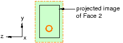 When you exit the Sketcher, Abaqus/CAE cuts the sketched hole through the part, perpendicular to the datum plane and parallel to the X-axis. This cut is illustrated in Figure 5.