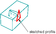 ![]() Note: The complete sketched profile for the cut in Figure 1 is a triangle, as shown. If the profile were a trapezoid whose top edge coincided with the edge of the block, the cut would look very different. As the profile was extruded, the application of draft made it smaller. The top face of a trapezoid profile would immediately fall below the surface of the block instead of extending through the top surface. Abaqus/CAE cannot mesh an extruded solid that includes draft with hexahedral elements unless you partition the solid into structured regions. |