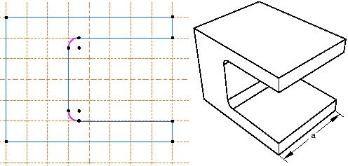 The sketch and the extrusion depth (a) are the modifiable parameters that define the base feature. You can revisit the base feature and change its size or shape by using the Feature Manipulation toolset to modify either the section sketch or the extrusion distance. If desired, you can delete the base feature and sketch a new shape.