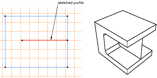 The first feature you create while building a part is called the base feature; you construct the remainder of the part by adding more features that either modify or add detail to the base feature. In this example the base feature is a U-shaped part; the user sketched a two-dimensional profile and extruded it to form the base feature, as shown in Figure 2.